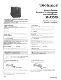 Poskytujeme 1 manuály pdf Technics SB-AS500 ke stažení zdarma podle typů dokumentů: Uživatelský manuál